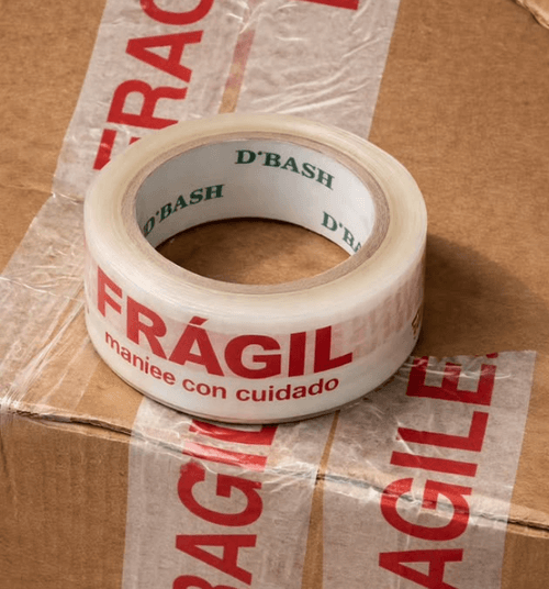 cintas de embalar (texto frágil) 45 micras x 48mm x 90mt 72 rollos por caja. Ref-5049